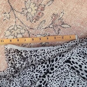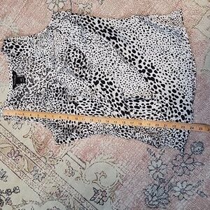 Black and white animal print WHBM top features a ruffled front and a hidden side zip in size XXS.