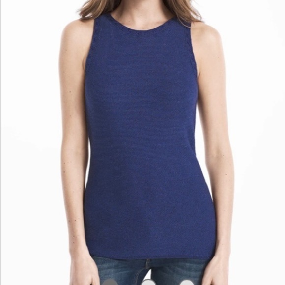 White House Black Market Sleeveless Sweater with Metallic Shine Blue Size L NEW