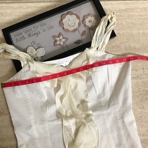 Sleeveless Ruffled Top is in great condition, with the exception of the little small dots in the back( picture 4) that's not very noticeable.