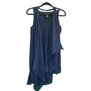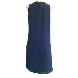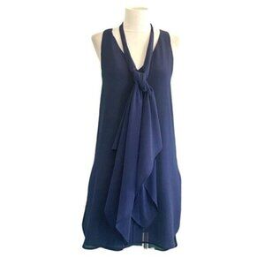 White House Black Market Sleeveless V-Neck Scarf Navy Chiffon Tunic Top Size S