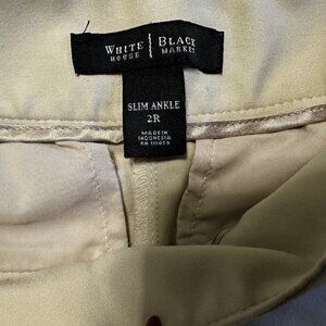 Step up your wardrobe game with these White House Black Market Slim Ankle Pants in a neutral khaki color! These tailored slim ankle pants are made from a soft and stretchy cotton/nylon/spandex blend, making them comfortable enough for all-day wear while still looking polished and professional.