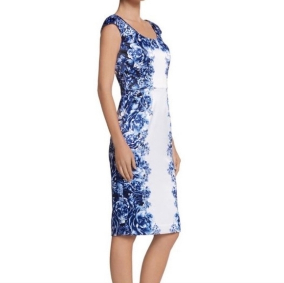 White House Black Market White Slimming Blue Floral Print Sheath Dress Size 2