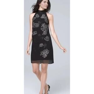 White House Black Market Small Halter Sequin Embroidered Mini Shift Dress Black