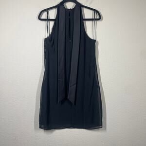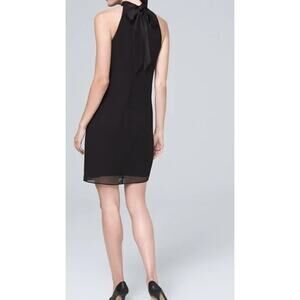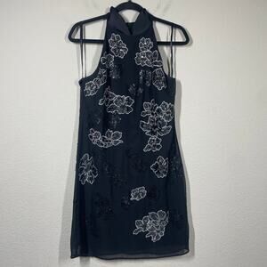 White House Black Market Size Small Halter Sequin Embroidered Mini Shift Dress Black Tie Back Sleeveless