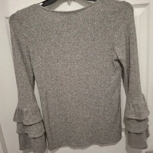 White House Black Market Small Heathered Gray Ruffle Bell Sleeves Chic Sweater