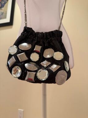 Wristlet has magnetic disc that bundles the bag around your wrist or keeps chain together inside
