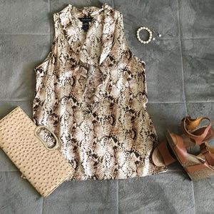 White House Black Market Snake Print Silk Blouse
