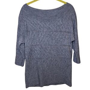 White House Black Market Soft Gray W/Silver Threading 3/4 Sleeve Sweater Size M