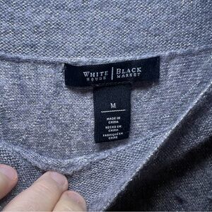Made from a wool blend, this sweater is comfortable to wear and easy to care for with hand wash only instructions. It is a regular size M and fits the women's department. The knit style is perfect for a cozy feel, and the sweater is not vintage. The brand is White House Black Market, and the sweater is made in China.