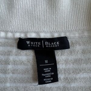 White House Black Market Sparkle Cream Sweater. Women’s size medium. Like new! This sweater is so cute! The photos don’t do it justice! The sparkle stripes make this perfect for any holiday party or event. Armpit to armpit measures approximately 16.5”. Shoulder to hem measures approximately 25.5”.
