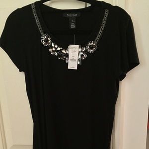 White House | Black Market Stone Necklace Tee (Black)-- NEW with tags and spare stones