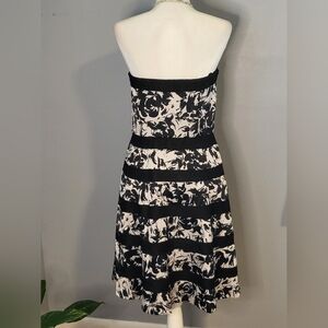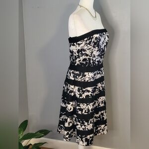 Beautiful WHBM strapless bandeau black and white floral with black lace insert dress in size 10 is perfect for a wedding, prom, or formal event.