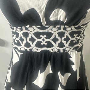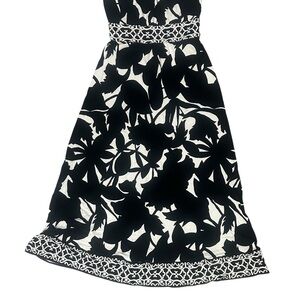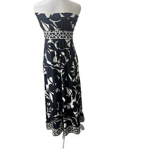 Elevate your summer and resort wardrobe with this stunning strapless maxi dress by White House Black Market. Featuring a bold black and ivory abstract floral print, this flowy, floor-grazing dress flatters with a smocked back and stretchy empire waist detail for a comfortable and feminine silhouette.