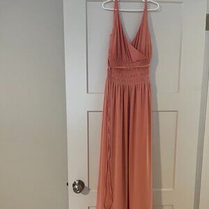 Worn once at a wedding. Great dress with tie that wraps around the middle.