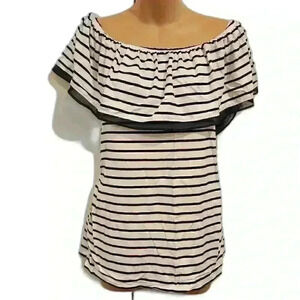 White House Black Market Striped Ruffle Top Blouse XL $68