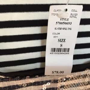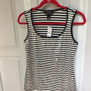 NWT Chic sleeveless black and white striped tank top. Features clear sequins on front and solid plain back. Has stretch. Perfect for a stylish look.