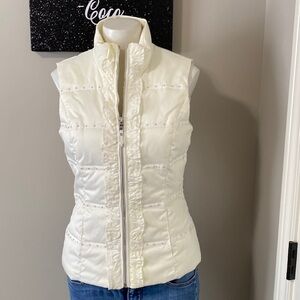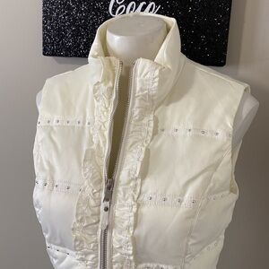 White House Black Market Studded Puffer Vest Cream Ruffle Full Zip Sz XS