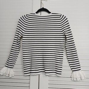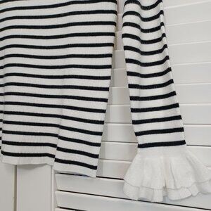 White House Black Market Sweater Black Striped Ruffle Cuff Gold Button WHBM