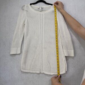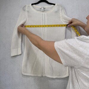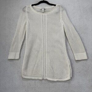 White House Black Market Sweater Womens Small White Open Knit Pullover 3/4 Sleeve