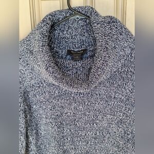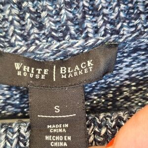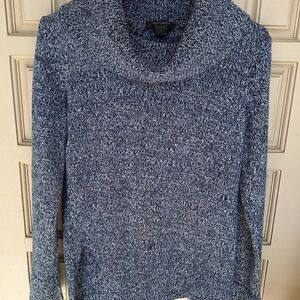 White House Black Market SzS Blue Knit Cowl Neck Sweater Long Sleeves Slit Hem