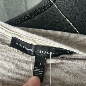 This tan blouse from White House Black Market features a fitted silhouette with ribbed detailing, offering a stylish and modern look. The blouse's design ensures a comfortable fit, making it a versatile addition to any wardrobe. Its elegant style is perfect for both casual and formal occasions.