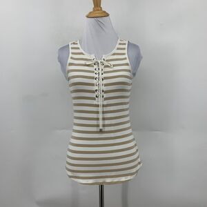 White House Black Market Tank Top Women 2XS XXS Striped Crew Neck Lace Up Front