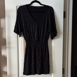 White House Black Market Textured leopard print Black Midi Dress