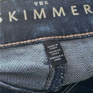 Dark blue skinny jean with distressed details at the knees. Skimmer style. Size 2. Excellent used condition.