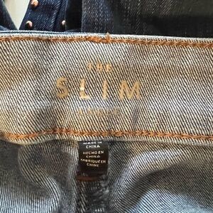 White House Black Market The Slim Ankle Jean with Rose Gold Stud Tuxedo Stripe Detail. Button and zip fly closure. Classic five pocket styling. Slim fit. Factory applied fading and whiskering through thigh.