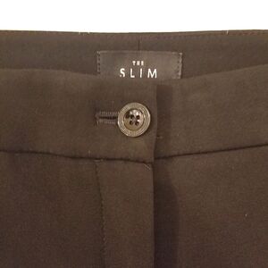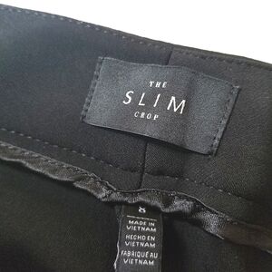 Great quality White House Black Market classic black pants in the slim crop style, cute peekaboo slit on back of legs, in pristine condition, size 8.