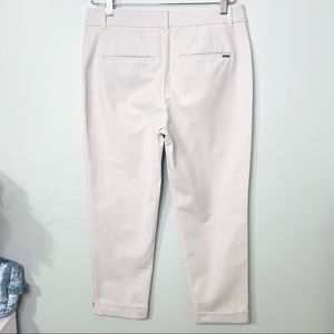 WHBM White House Black Market The Slim Crop Cotton Stretch Cuffed Dress Pant Capri Ankle Pants Khaki Cream Off White Neutral Colors