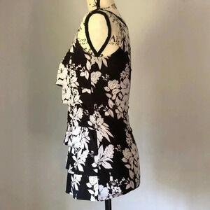 Black and white floral printed top by White House Black Market. Ruffle details down the front. Size XXS. Please feel free to ask any questions before purchase.