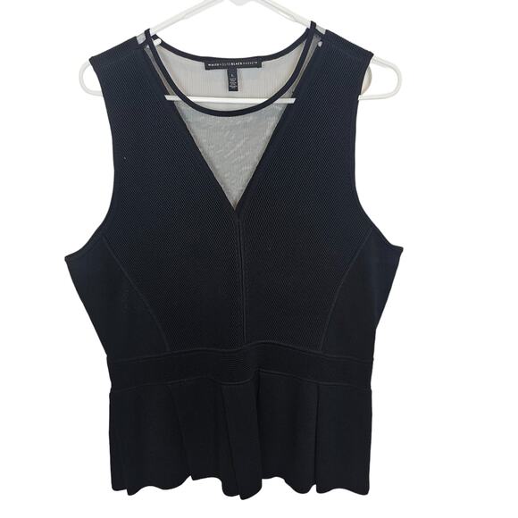 White House Black Market Top Peplum Top Sleeveless Blouse Women L Black Knit Top