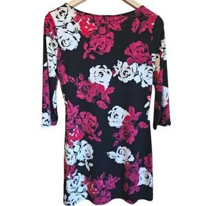 White House Black Market Tunic Stretch Asymmetrical Neckline Floral Women Small
