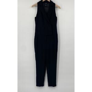 White House Black Market Tuxedo Jumpsuit Sleeveless Straight Leg Black Womens 0