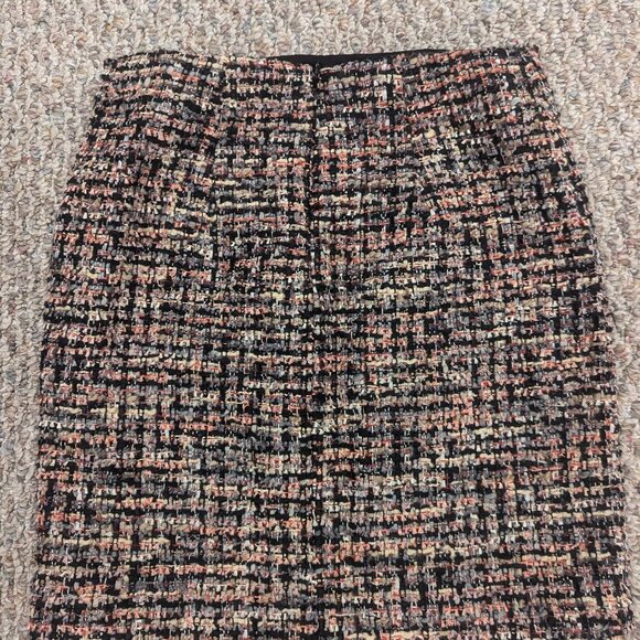 Almost new, rarely worn White House Black Market Tweed Mini Skirt 00P. Black base with Pink and Beige accents all over. Beautiful silk material lining. Also listing matching blazer in separate listing. Will make a great set. Can wear from work to evening out. Smoke free home.