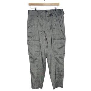 White House Black Market Utility Pants Belted Linen Blend 12R Midnight Twill