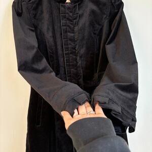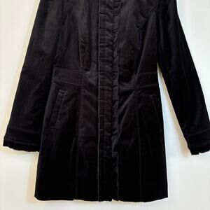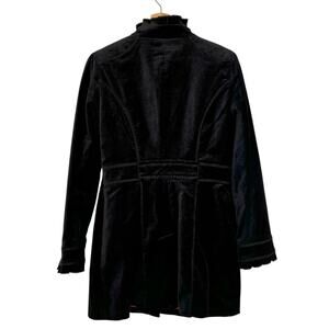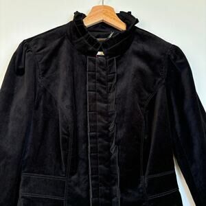White House Black Market Velvet Jacket Sz Small Ruffle Neck n Closure Mid Length
