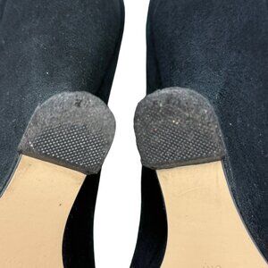 White House Black Market Vidal Black Suede Open Toe Curved Wedge Heels Size 6