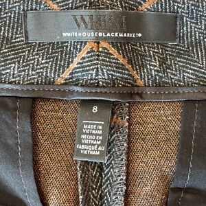 White House Black Market WHBM Elle Slim Plaid Trouser Pants Gray Windowpane Grey