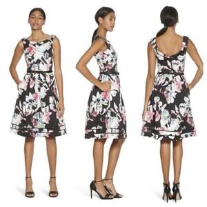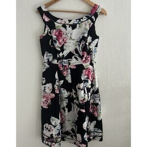 White House Black Market WHBM Fallie Firl A Line Black Floral Midi Dress 2