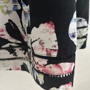 The White House Black Market WHBM Fallie Firl A Line Black Floral Midi Dress in size 2 is a stylish and versatile piece suitable for various occasions such as weddings, parties, casual outings, and formal events. The dress features a beautiful floral pattern in a vibrant multicolor design, with a sleeveless design and boat neckline for a sophisticated look. Made from a blend of polyester, spandex, and cotton, this A-Line dress also includes accents like a zipper closure and pockets for added convenience. Perfect for the summer, fall, and spring seasons, this dress combines classic charm with a touch of color and style.