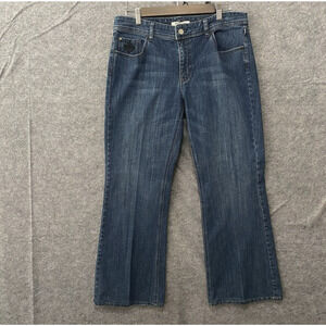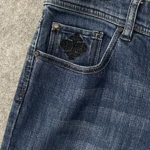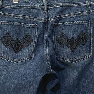 White House Black Market WHBM Flare Jeans Womens 12R Blue Embroidered Blanc