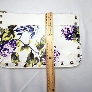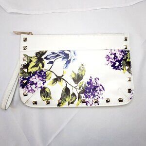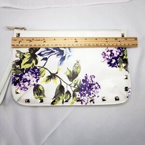 White House Black Market WHBM Floral Studded Wristlet Clutch White Purple Green