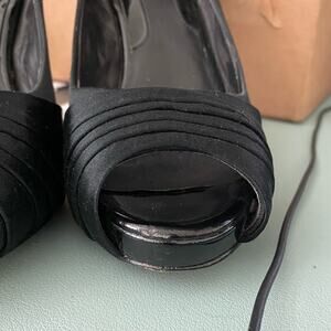 White House Black Market WHBM Jordin Peeptoe Heels Platform Shoe Black Satin 7.5
