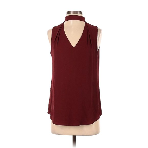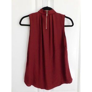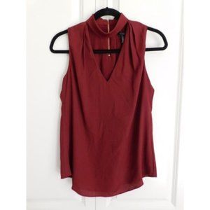 White House Black Market WHBM Maroon Keyhole Pleated Chiffon Blouse size 2