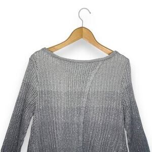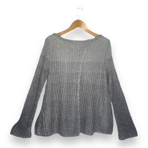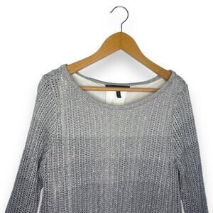 White House Black Market WHBM Sequin Ombre Twofer Sweater Size XL Gray Silver