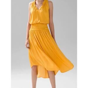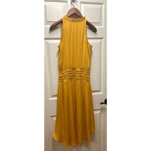 Elevate your wardrobe with this stunning White House Black Market (WHBM) vibrant yellow halter dress! Perfect for a special occasion, summer event, or a chic night out. This dress features a flattering smocked waist that creates a beautiful silhouette, a stylish halter neckline, and a flowy skirt. Made from luxurious satin-like fabric, it offers both comfort and elegance. In excellent condition, ready to make a statement!