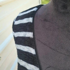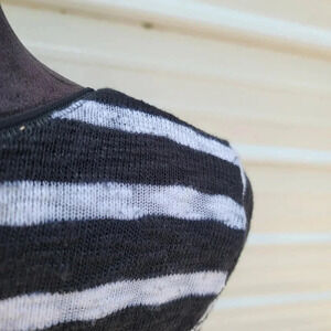 White House Black Market WHBM Striped V-Neck Knit Sweater Open Back Lace Sz S