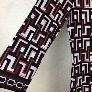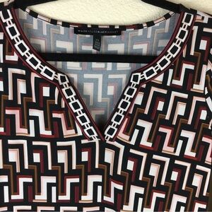 WHBM White House Black Market Tunic Dress Black Red Cream Brown Geometric Print 3/4 Sleeve XS